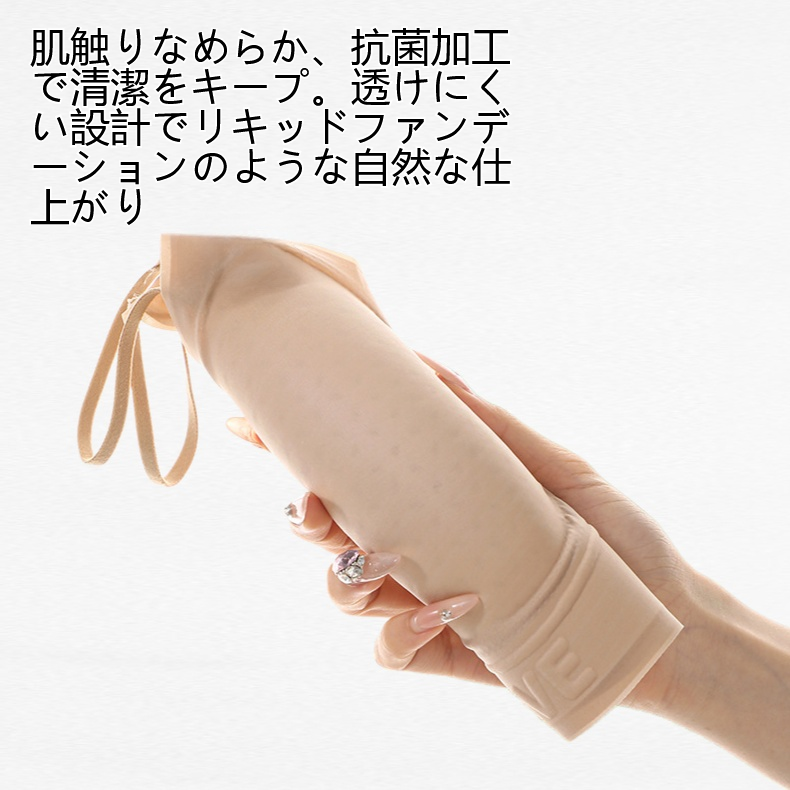 肌触りなめらか、抗菌加工で清潔をキープ。透けにくい設計でリキッドファンデーションのような自然な仕上がり。デイリー使いに最適。